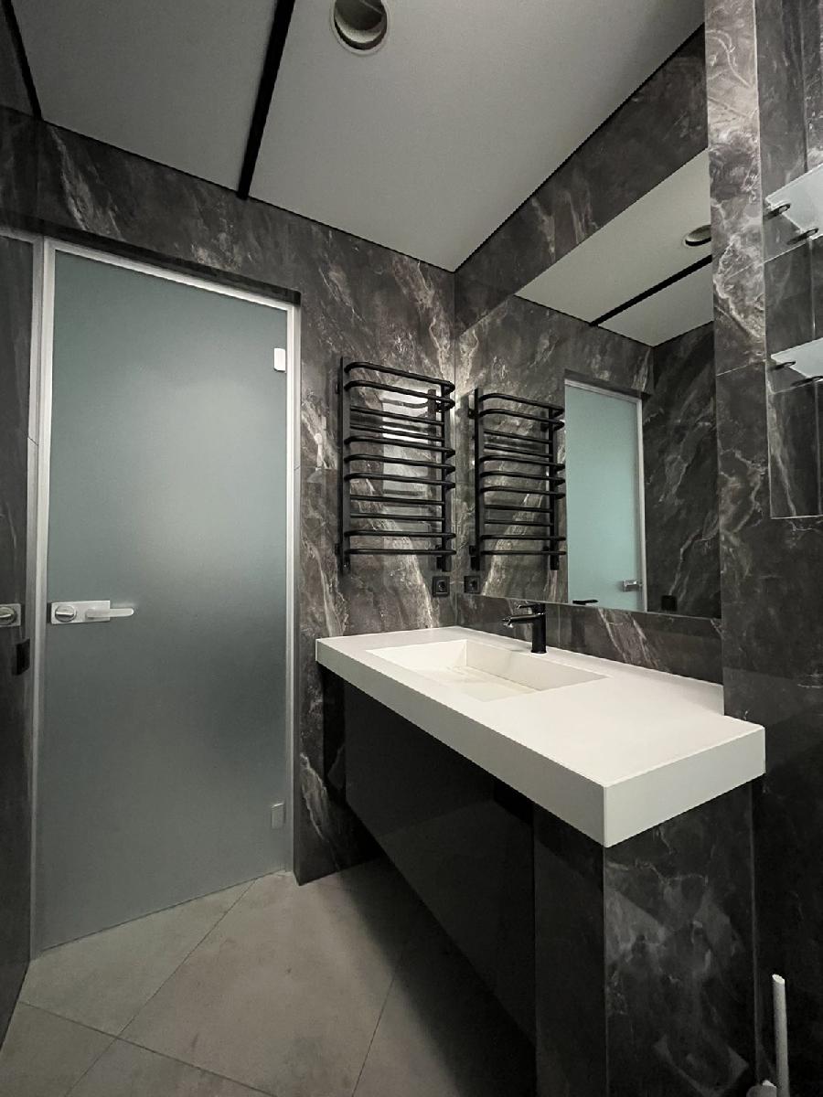 Міжкімнатні двері скляні з алюмінієвою рамою.