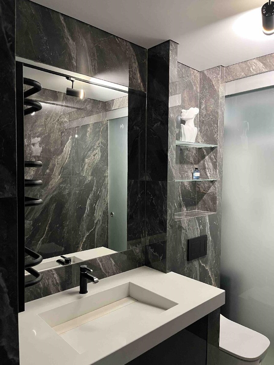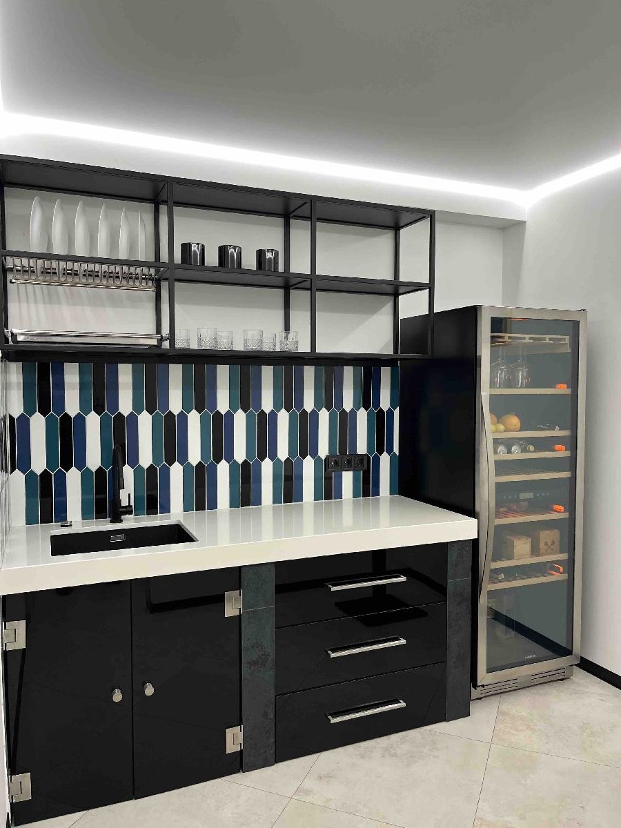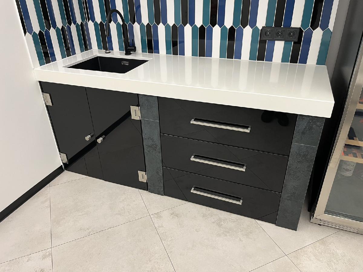 Стільниці в кухні а також умивальник з італійського штучного каменю